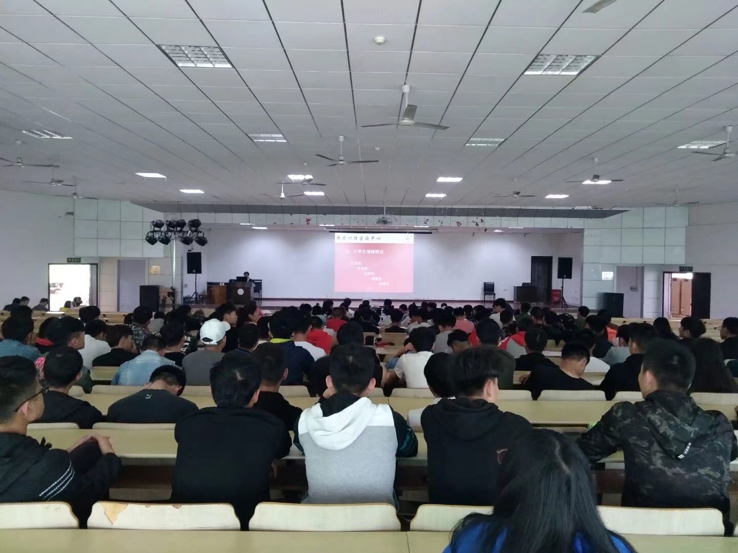 4月26日下午2点,一场别开生面的“掌控情绪,掌控人生”的心理讲座在北区学术报告厅举行。此次邀请到的是国家二级心理咨询师、黄冈市心理咨询学会副会长王礼端教授。全讯新2网官网党总支副书记袁建明、辅导员林莉、董菊明老师以及曾全红老师、熊红娟老师和体院近200名学生参加了学习。