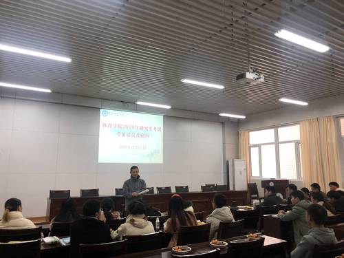 12月11日下午,在距2019年研究生考试十天倒计时之际,在体育馆205会议室,我们欢聚一堂,来了一次别开生面的考前动员会,为了缓解大家的紧张,学院学生办公室为大家准备了瓜子、花生、香蕉、橘子及牛奶,大家一边唠嗑一边相互鼓励。