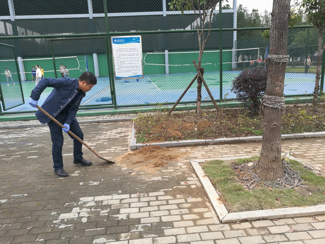 在体育运动中心周边以及南区室外运动场,院领导带头清理、捡拾垃圾。同志们紧密配合,分工明确,齐心协力,细心细致,不怕脏,不怕累,在大家共同努力下,一下午的清扫之后,体育运动中心周边变得整洁起来,烟头等常见垃圾被清扫一静。