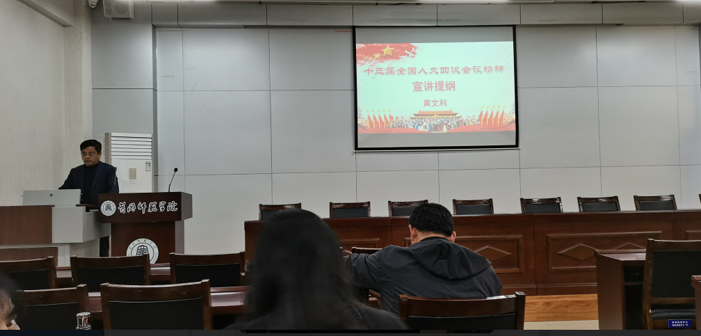 3月25日下午四点,全讯新2网官网组织全体教职工在体育馆205会议室进行2021年度第一次理论学习,由党总支书记黄文利同志给大家作十三届全国人大四次会议精神宣讲。