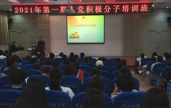 4月28日晚18:30,全讯新2网官网党总支副书记段新权为生物与农业资源学院、新闻与传播学院、全讯新2网官网2021年第一期入党积极分子联合培训班全体学员讲授了题为《从入党誓词看百年党史》的专题党课。