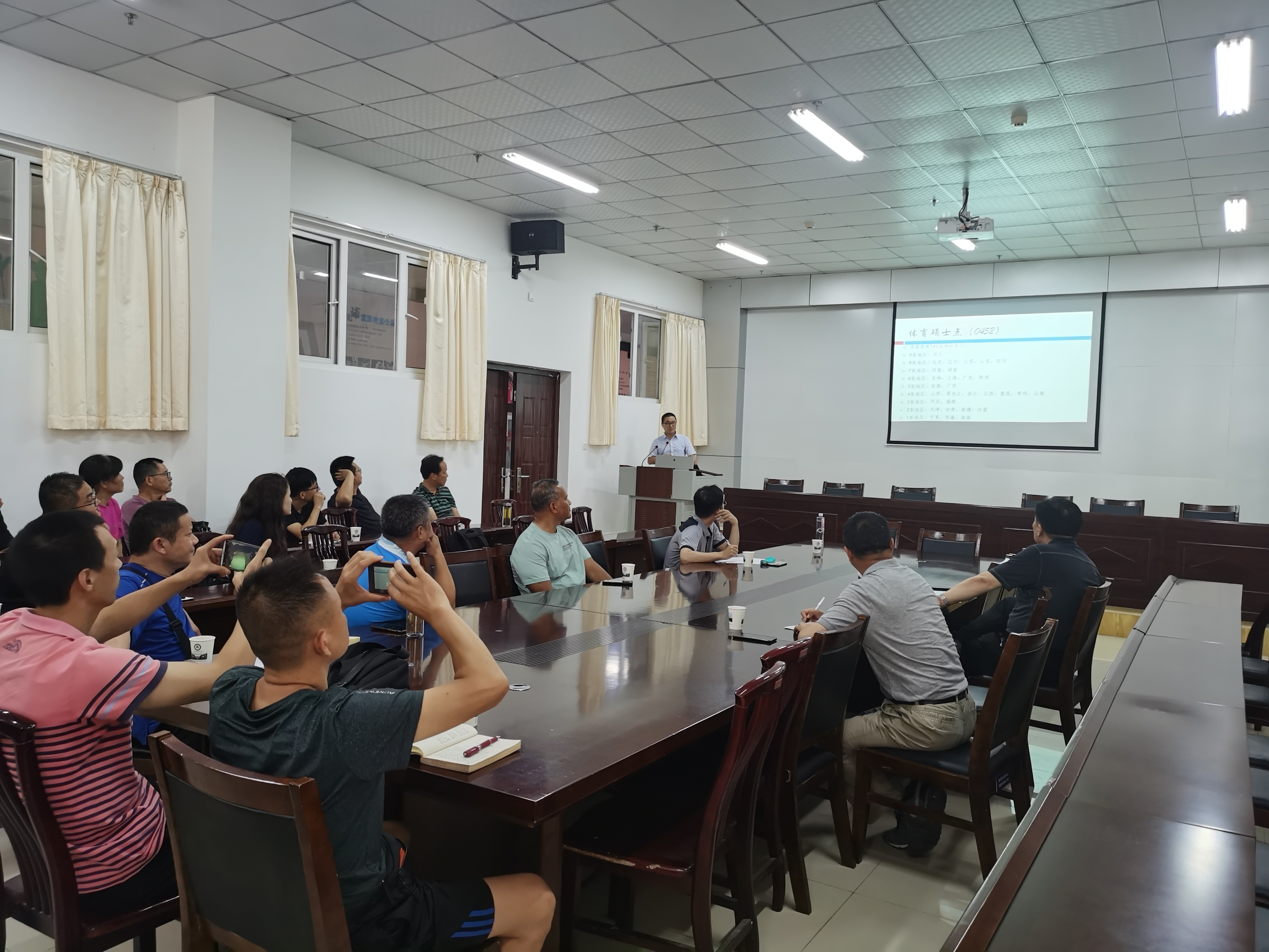 会上,院长助理曹烃博士首先就《体育硕士点发展概况与申报要求》为主题,从国情、省情、校情和院情等4个方面进行了全面的分析,认为教育部2017年9号文件和2020年教育部颁布的《专业学位研究生教育发展方案(2020-2025)》是当前硕士点发展的政策纲领,全讯应对标发展,找出差距,为下一轮硕士点的申报作好准备。