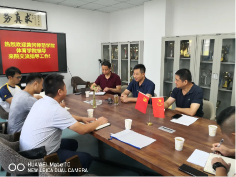院长助理汪子文与湖大全讯新2网官网副院长张强弓就校园体育文化建设展开深入的交流。张院长还详细介绍了湖北大学正在筹备中的体育文化节,半程马拉松,健康跑等活动的筹办情况。