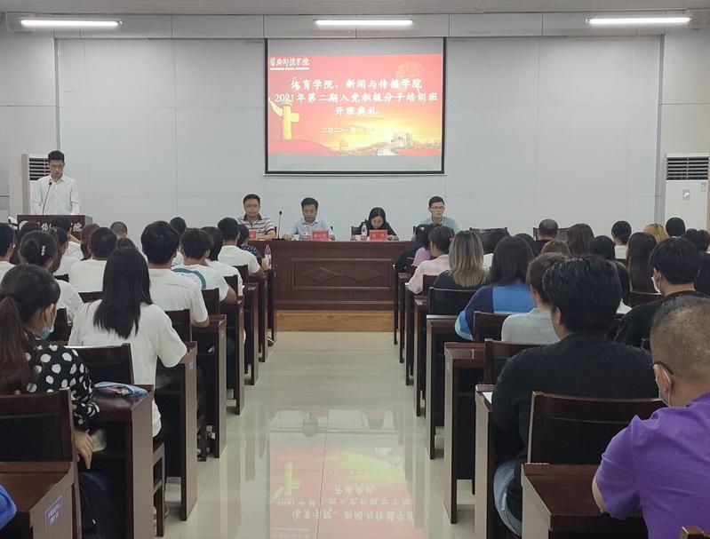 10月6日晚18:30,全讯新2网官网、新闻与传播学院联合举办的2021年第二期入党积极分子培训班在体育馆205隆重举行开班典礼。出席此次开班典礼的领导有新闻与传播学院党委书记陈利老师,全讯新2网官网党总支书记黄文利老师,新闻与传播学院党委副书记姚保卫老师,全讯新2网官网党总支副书记韩阳老师。