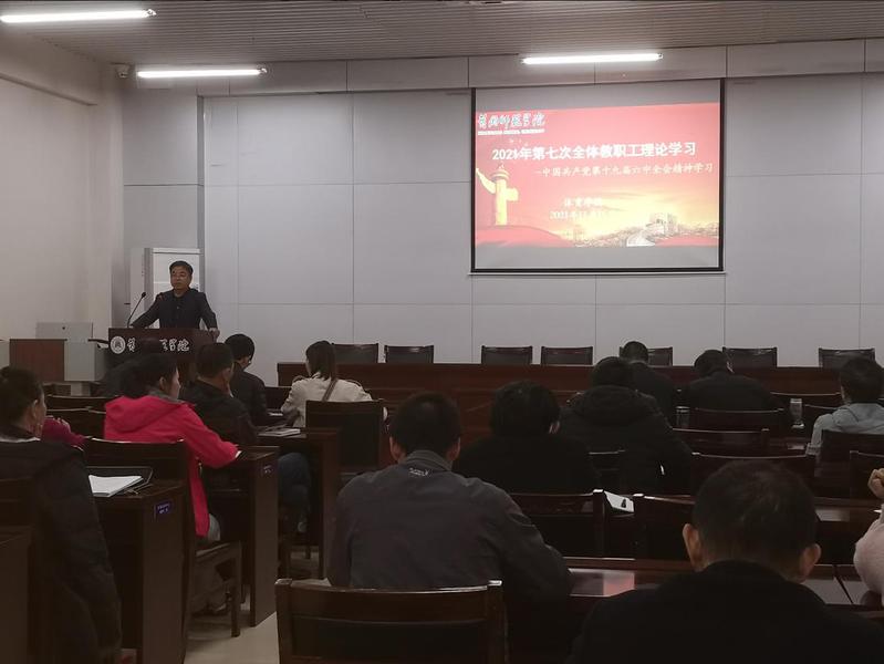 11月16日晚上,全讯新2网官网全体教职工在全讯新2网官网205会议室开展2021年度第七次理论学习暨十九届六中全会精神专题学习,会议由全讯新2网官网党总支书记黄文利同志主持。