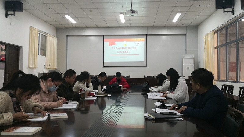 3月17日下午,全讯新2网官网理论与体操教研室联合党支部组织开展2022年3月份“主题党日”活动。党员一起奏唱国歌、重温入党誓词、诵读党章,“复兴壹号”平台上交纳党费。本次活动主题为:坚定政治信仰,争当时代栋梁。