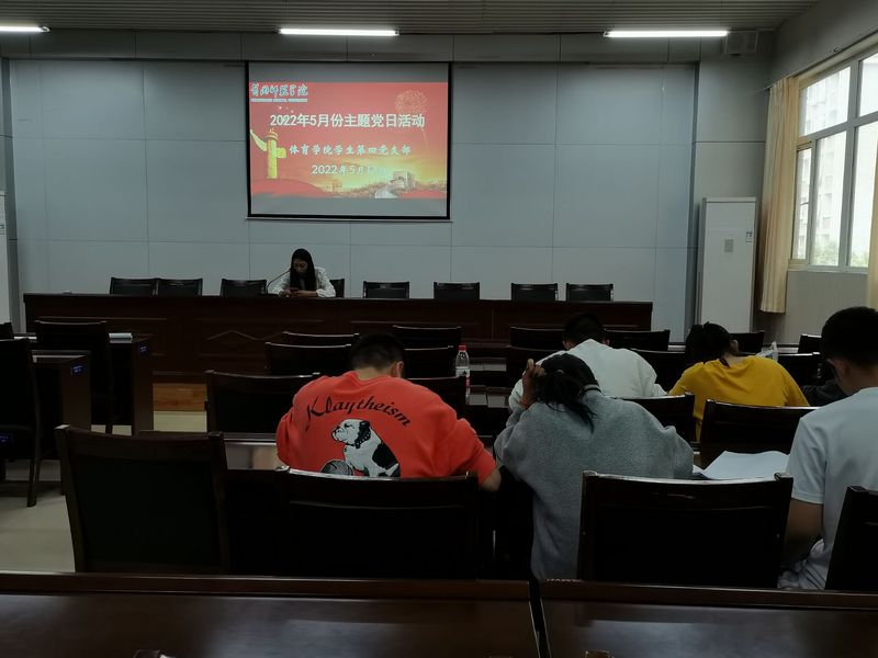 5月12日下午2点半,全讯新2网官网学生四个党支部在体育馆205会议室举行5月份联合“主题党日”活动。活动中全体党员一起奏唱国歌、重温入党誓词、诵读党章,并完成“复兴壹号”平台上交纳党费工作。本次活动主题是:全力以赴稳增长、坚守底线保安全。
