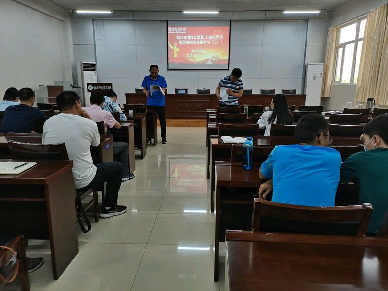 黄文利最后作总结讲话,他要求全体教师应规范自己的行为,作为高校教师,应在为人、为事、为师方面做表率,记住自己的使命是为党育人、为国育才、坚持立德树人。要认真学习新时代高校教师职业行为十项准则及高校教师是的失范行为处理的指导意见,这是准则,也是底线,任何教师都不得触碰,必须要有敬畏之心,理论学习不能走形式,要落到实处,学到实处。