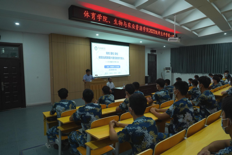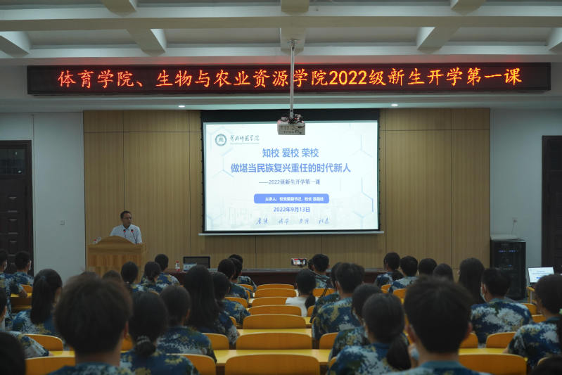 2022年9月13日,校长漆昌柱教授以《知校 爱校 荣校 做有志有识有责有为有德的时代新人》为题,在博学楼B01教室为体育学院、生物与农业资源学院2022级新生上开学第一课。