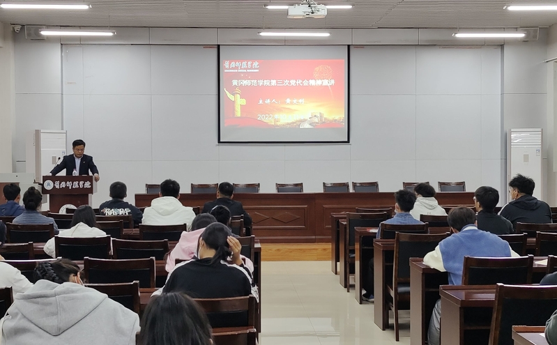 黄文利从三个方面进行讲授:一是学校第三次党代会基本情况;二是学校第三次党代会主要精神;三是如何贯彻落实第三次党代会精神。