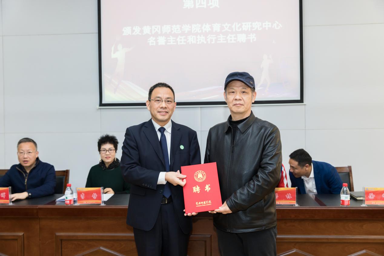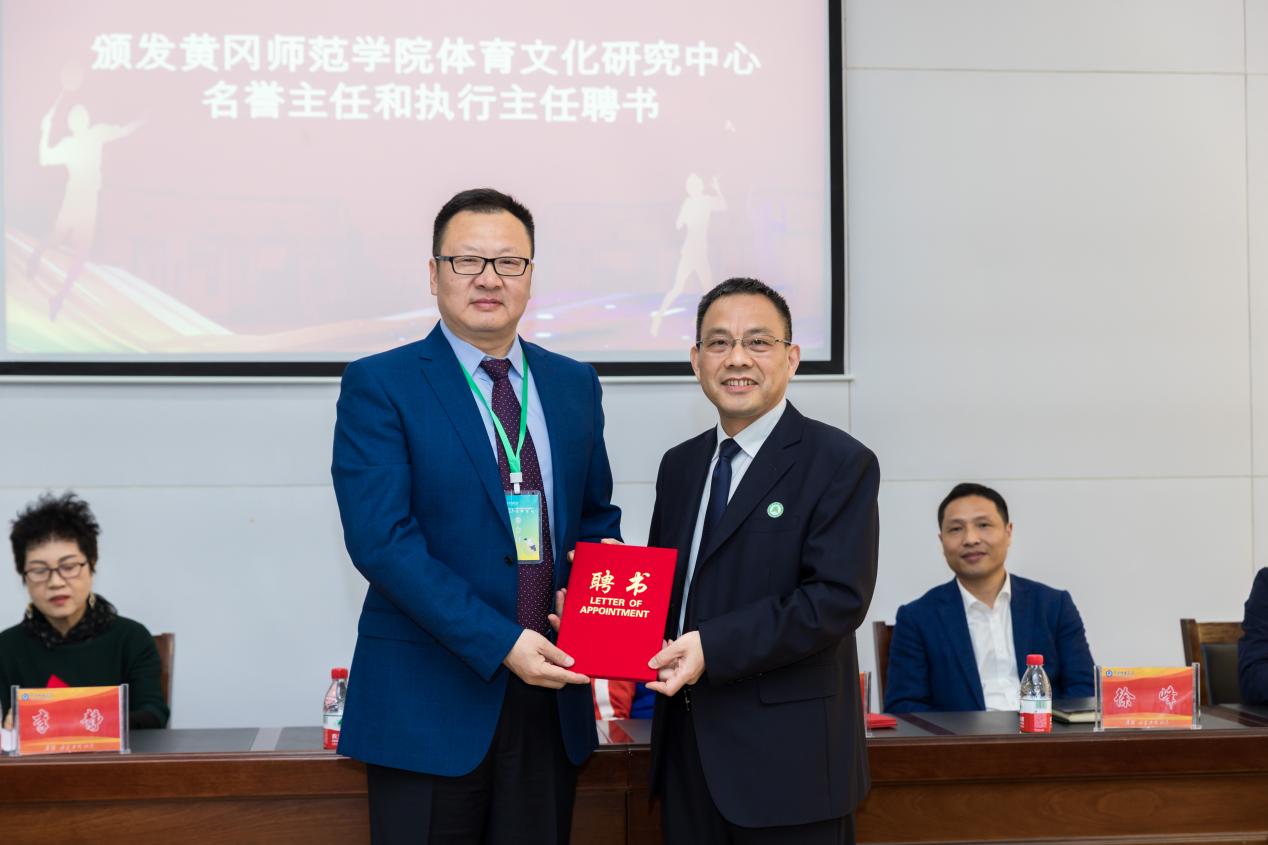 漆昌柱校长为余利斌教授颁发全讯新2网官网体育文化研究中心执行主任聘书