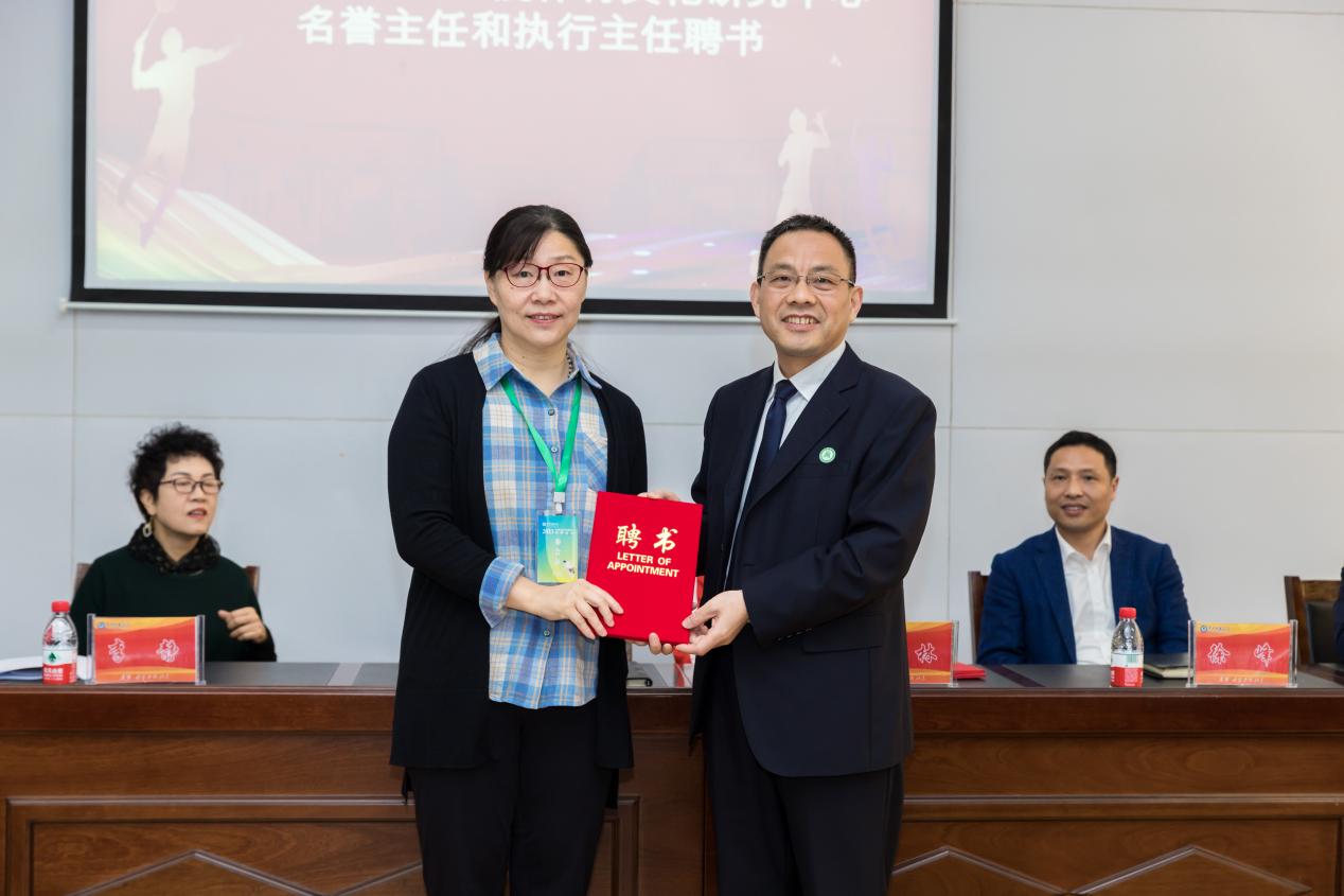 会议期间,学校举办了全讯新2网官网体育文化研究中心揭牌仪式,漆昌柱分别为中心名誉主任、执行主任、特聘研究员等颁发聘书。