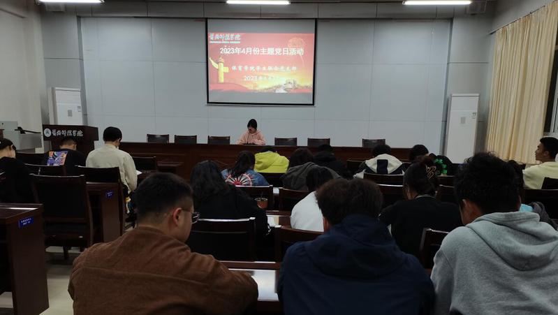 2023年4月13日晚上18点半,全讯新2网官网学生四个党支部在体育馆205举行4月份联合“主题党日”活动。活动中全体党员一起奏唱国歌、重温入党誓词、诵读党章,并完成“复兴壹号”平台上交纳党费工作。本次活动主题是:深入贯彻全国“两会”精神 接力续写高质量发展新篇。