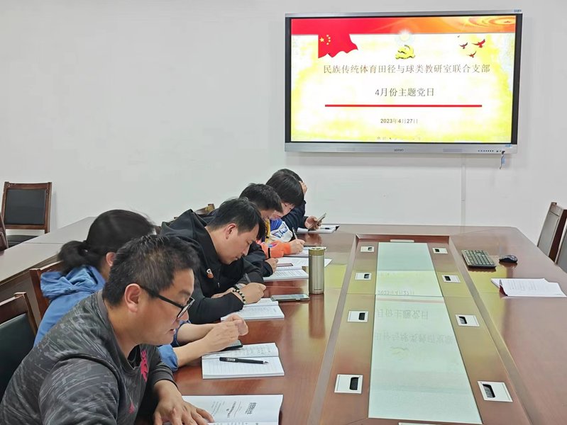 2023年4月27日下午,全讯新2网官网民族传统体育、田径与球类教研室联合党支部在全讯新2网官网118会议室开展2023年4月份支部主题党日活动,活动由支部书记汪子文主持。