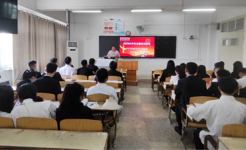 学生第二党支部书记林莉传达学习习近平总书记在全国学习贯彻习近平新时代中国特色社会主义思想主题教育工作会议以及在广东考察时的重要讲话精神重要内容;学习党中央关于统一战线工作的决策部署和工作要求,学习习近平总书记关于民族宗教工作的重要论述,以及中央民族工作会议和全国宗教工作会议精神;学习王蒙徽书记在全省市厅级主要领导干部“学习贯彻党的二十大精神加快建设全国构建新发展格局先行区”专题培训班开班式的上的重要讲话精神;学习《习近平关于注重家庭家教家风建设论述摘编》,学习民法典、增强法治意识,要广泛开展民法典宣传。并组织支部全体到会党员观看短视频《习近平“典”亮新时代|家风篇》等党员教育宣传片。