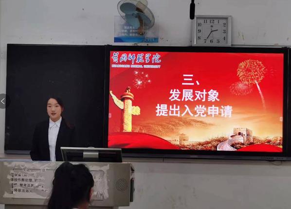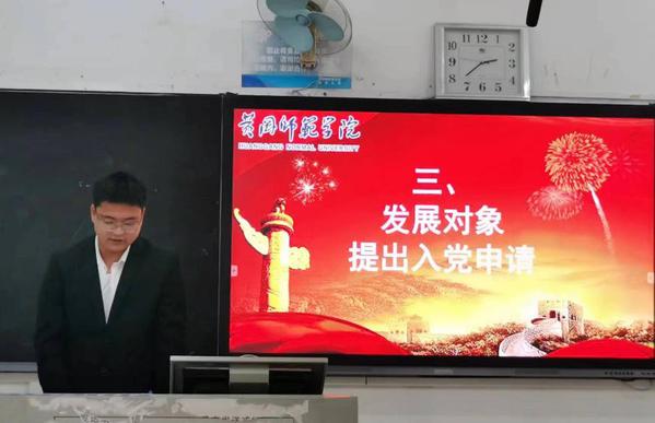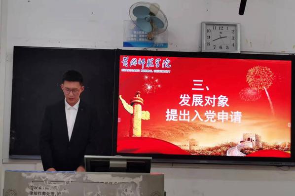 3、黄萱萱、张学珩、邓帅帅3名重点发展对象依次提出入党申请,并汇报培养考察期内的学习、工作、生活动态,及向党组织说明的相关问题。