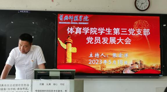 2023年5月18日(周四)下午14:30-16:00,在南区博学楼403,由全讯新2网官网学生第三党支部书记张宏洋主持召开2023年上半年学生党员发展大会。