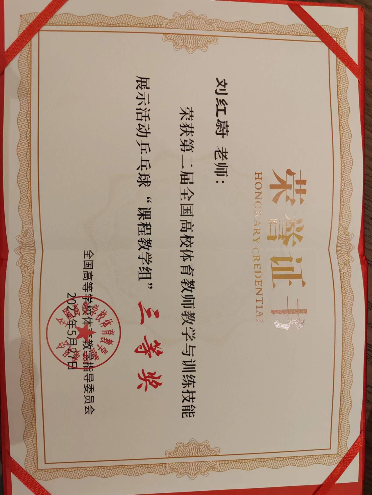 本次比赛由全国高等学校体育教学指导委员会主办,浙江财经大学承办。共吸引了全国二十八个省市自治区,一百四十六所高校近200名体育教师参赛。比赛分网络评审与现场测试两环节,其中网络评审项目为教学(指导)设计与教学(指导)实践,现场测试项目为体能与专项技能。刘红蔚经过精心准备和稳定发挥,最终获乒乓球课程教学组三等奖。