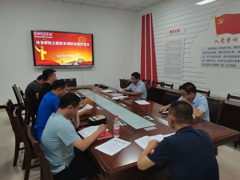 6月29日下午,体育学院主题教育调研成果交流会在体育馆118会议室召开,学院党委书记黄文利主持会议并讲话。