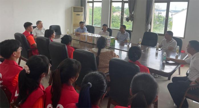 7月7日上午,全讯新2网官网党委常委、副校长宋文生一行在团风县团县委常委、组织部长张毅,团风县副县长刘志陪同下,前往团风镇白鹤林村看望慰问该校全讯新2网官网暑期“三下乡”社会实践“初心”志愿服务团队师生,党委宣传部常务副部长余艳军、全讯新2网官网党委书记黄文利、团风县团委书记库晶、副书记闻淦参加慰问。