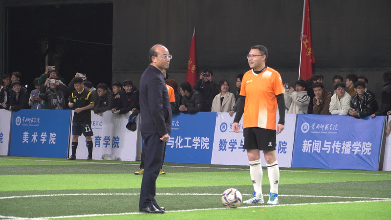 夏庆利致开幕词并宣布比赛开幕。他指出,近年来,学校大力推进“五育并举”,出台《关于全面加强与改进学校体育工作的若干措施》,先后承办了第二十二中国大学生羽毛球锦标赛、湖北省少年乒乓球锦标赛、全国中学生跆拳道锦标赛等大型赛事,参加湖北省第十六届运动会获得3金8银9铜的好成绩,获评“2017—2020年度全国群众体育先进单位”。学校非常重视足球运动的开展与推广,连续多年组织“黄师杯”足球赛,建设有湖北省高校一流的室内5人制足球场地。本次五人制足球赛,将为全校足球爱好者提供一个交流、竞技平台,希望全体运动员在比赛中享受乐趣、增强体质、健全人格、锤炼意志。