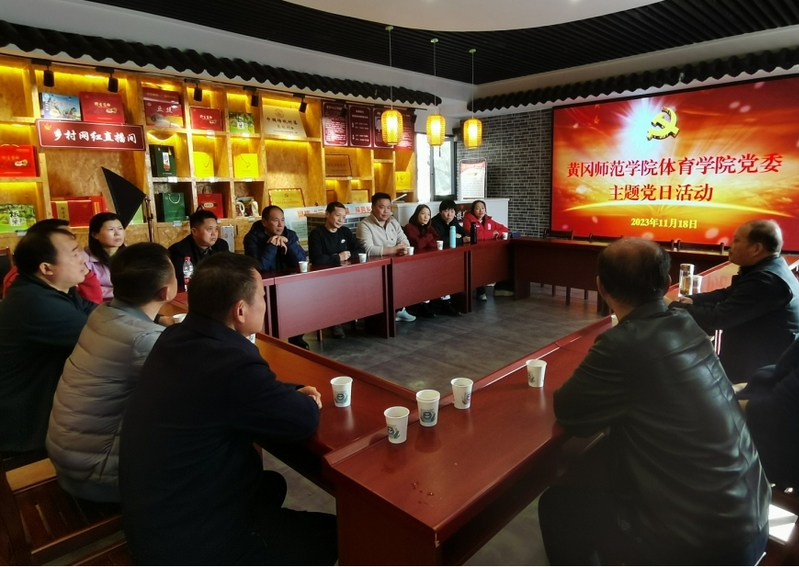 在东垸村村部会议室,教工两个党支部在完成支部主题党日规定动作基础上,听取了学校驻村工作队队长袁建明同志关于东垸村脱贫攻坚与乡村振兴工作、传统村落建设规划等的介绍,特别是学校五任驻村工作队接力奋斗、振兴东垸的故事,与会人员围绕党建引领乡村振兴、休闲体育与文化旅游等话题开展交流。