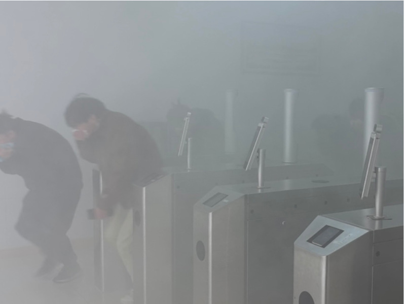 随着警报声响彻宿舍,浓烟四起,拉开了“学生宿舍消防疏散演练”活动的帷幕。听到警报声后,同学们用湿毛巾捂住口鼻在各志愿者引导下,沿安全通道俯身快速疏散至指定集合点,随后各班清点人数。疏散过程安全有序、行动迅速、效果良好。