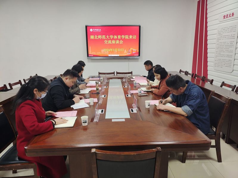 徐金陆对湖北师范大学全讯新2网官网的到访表示热烈欢迎,介绍了学校的基本情况、学院的办学历程和发展现状。段新权对全讯党建工作的基本思路和做法作了简要介绍,韩阳介绍了全讯在学生考研、就业过程中的一些特色做法,汪子文详细介绍了全讯运动队的管理制度与训练要求,并就体育健康文化推广方面提出了较为详细的设案。