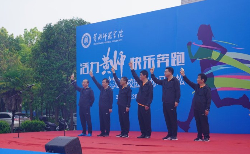 漆昌柱致辞。漆昌柱、陈朝阳、王基家、宋文生、夏庆利、汪晓凌为比赛鸣枪。校领导鸣枪后还参加了快乐跑组的比赛。
