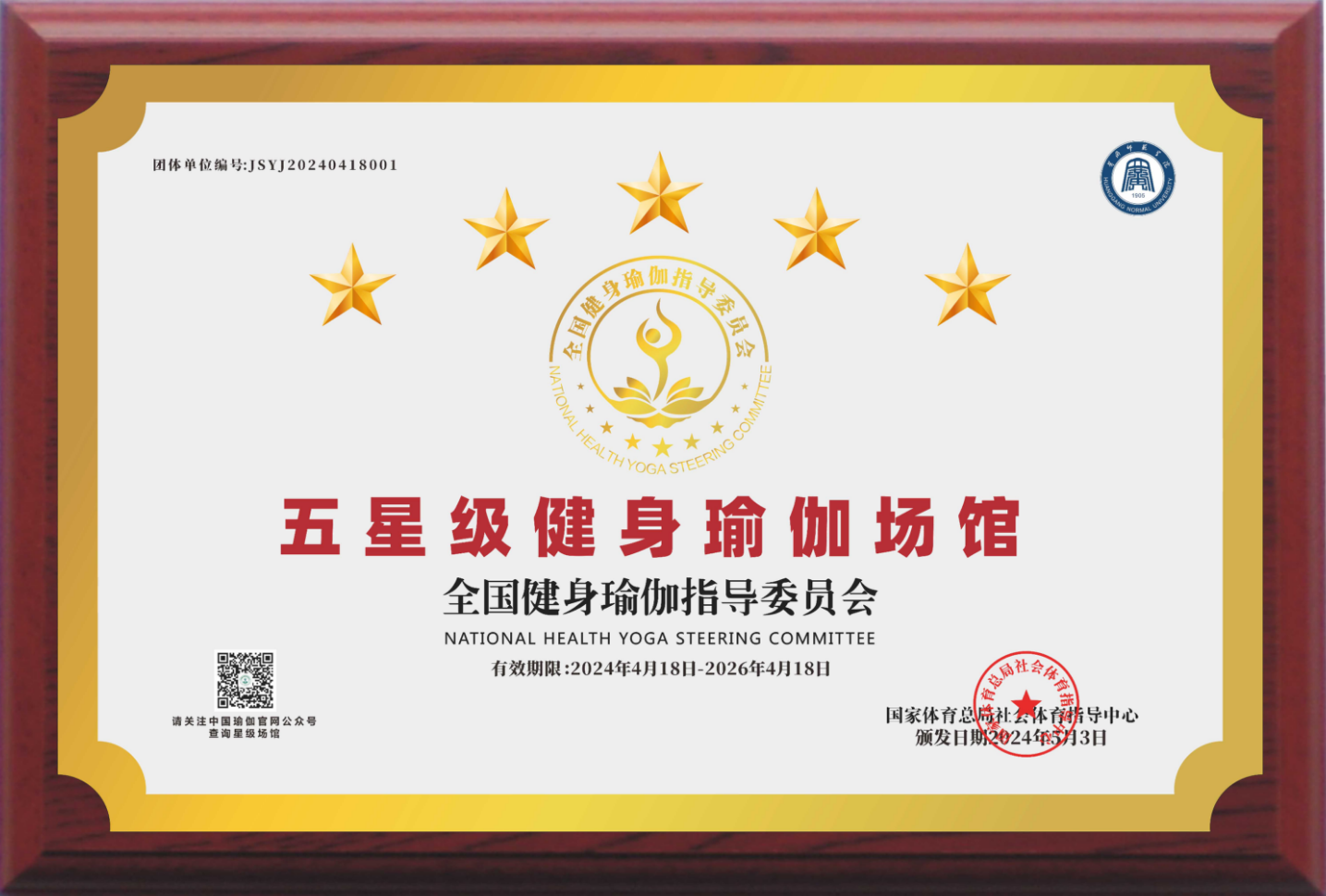 近日,国家体育总局社会体育指导中心传来喜讯,全讯被授予国家“五星级健身瑜伽场馆”、“健身瑜伽段位一级考评中心”、“国家健身瑜伽段位、教练员、晋段官考评基地”,成为湖北省高校获评的第一所“五星级健身瑜伽场馆”。