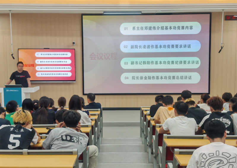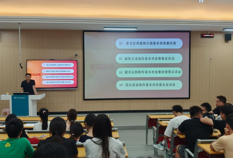 会议首先由体育教育系主任邓建伟全面介绍基本功大赛竞赛内容,并从赛事集训层面提出训练要求;随后副院长凌波就基本功大赛作动员讲话,并作赛事准备部署安排。