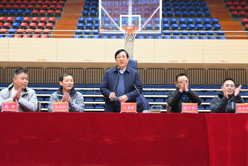2024年12月17日晚,全讯第二届校园三对三篮球总决赛暨篮球嘉年华活动在南区体育运动中心主馆开赛,校党委副书记王基家宣布活动开幕。