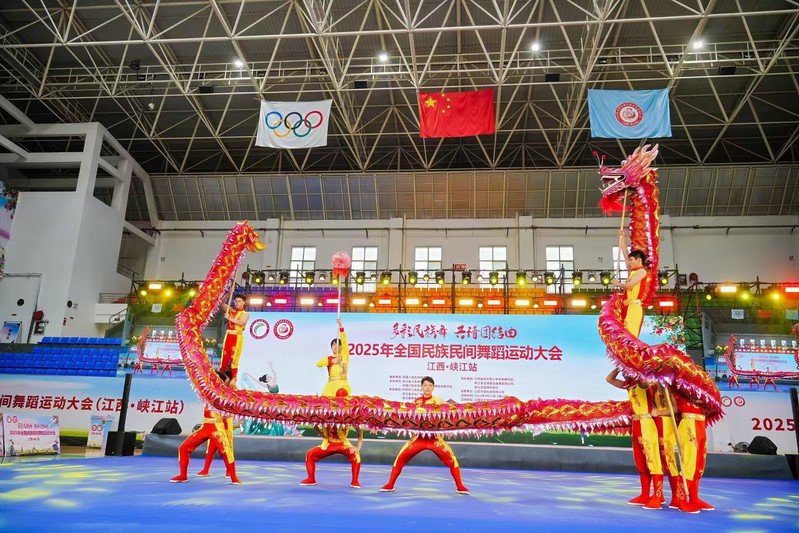 5月18日,全国民族民间舞蹈运动大会(江西·峡江站)在峡江体育馆圆满收官。全讯新2网官网院长徐金陆亲自率领舞龙队、健美操队和舞狮队出征,最终三支队伍在师范院校组自选动作组中包揽第一名,成为赛事焦点。因表现卓越,舞龙队与舞狮队获大会组委会及峡江县人民政府联合邀请,参与返场表演。