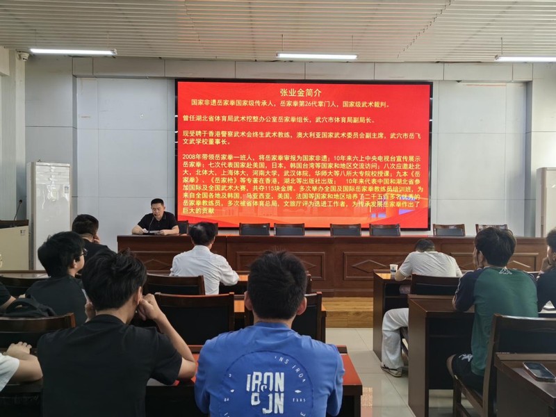 非遗的当代回响:从历史深处走向青春舞台“岳家拳不仅是招式,更是岳飞‘精忠报国’精神的载体。”报告中,张业金校长以拳法为线,串联起南宋抗金名将岳飞的爱国史诗。他特别强调,非遗传承的关键在于“唤醒文化基因”:“让青年在拳法中读懂‘三十功名尘与土’的赤子之心,方能真正接续中华文脉。”