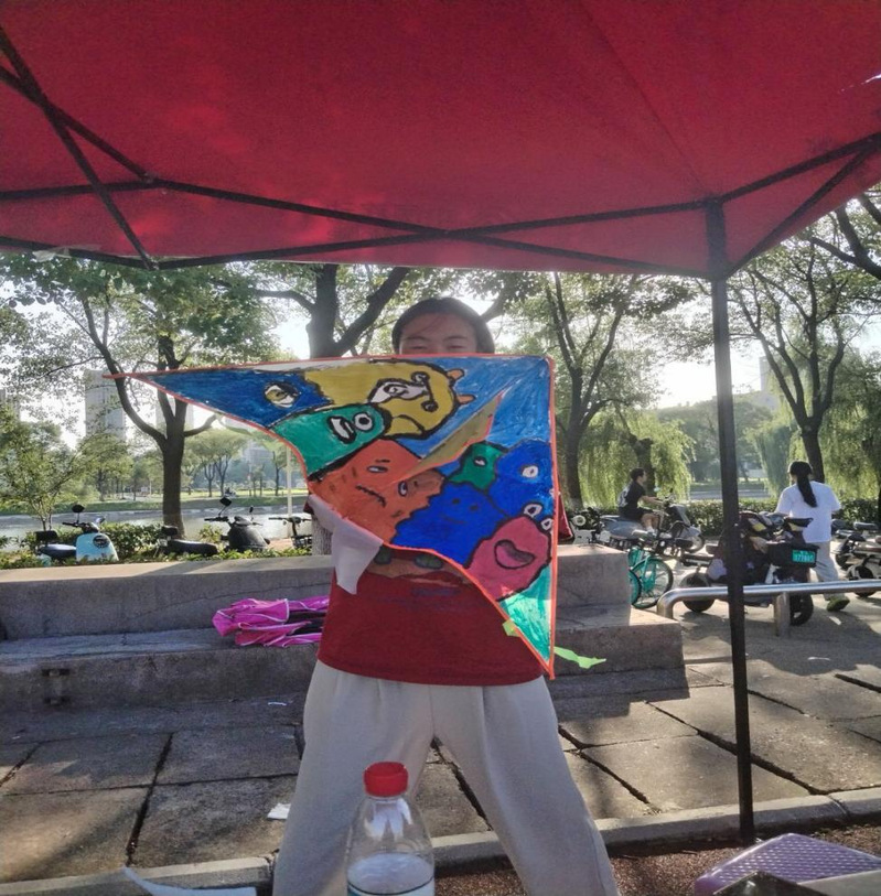 “老师快来看,我画的风筝怎么样?”随着邓莉的一声叫唤,同学和老师立马到随性涂鸦区,欣赏她和朋友涂鸦的画面,大胆的构思,鲜艳的色彩,好一幅动物世界,栩栩如生。同学们都交口称赞,竖起了大拇指。邓莉还调皮地摆个poss,留下难忘的一幕。涂鸦区引得不少同学。有的驻足学习,有的跃跃欲试,有的认真涂鸦,现场十分温馨。