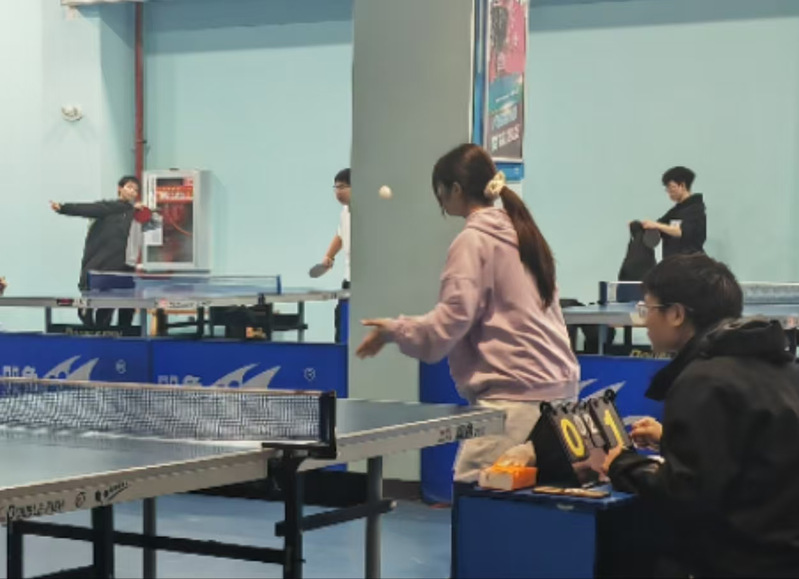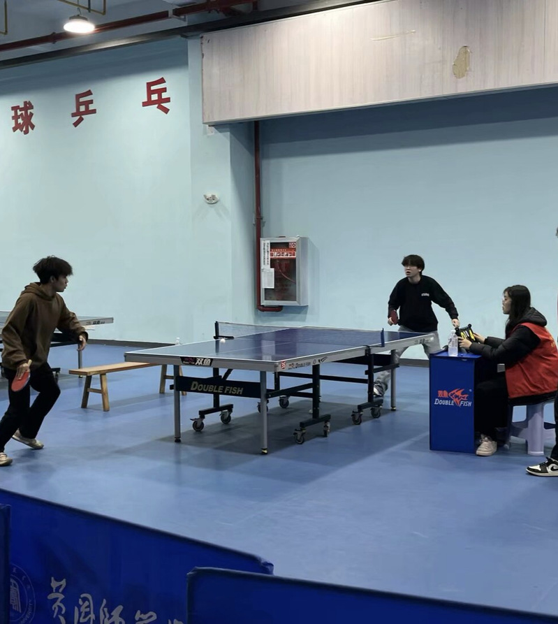 比赛期间,南区乒乓球馆内,参赛新生们风雨无阻,提前到场热身。赛场上,参赛选手们个个精神抖擞,严阵以待,尽情享受“国球”魅力。