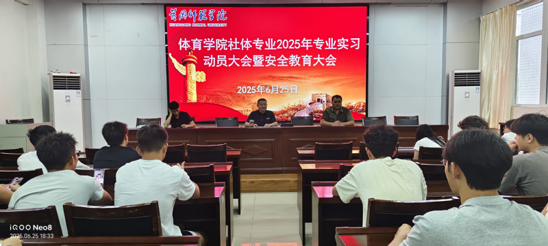 6月25日晚,社会体育指导与管理专业实习动员会暨实习安全教育大会在体育馆205召开。副院长凌波、系主任左为东、基础理论教研室主任吴越以及社体2022级全体学生参加本次会议。