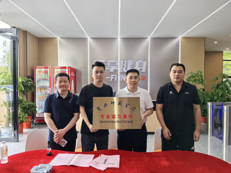 6月24日,全讯新2网官网院长徐金陆、副院长凌波、社会体育指导与管理系主任左为东一行赴黄冈市黄州区乐享健身馆签订了社体专业实习基地协议并授牌。