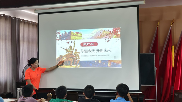 骆鑫以“巍巍大别山,精神永流传”为主线,通过深入浅出的讲解,向孩子们阐释了大别山精神“坚守信念、胸怀全局、团结一心、勇当前锋”的深刻内涵。她深情讲述了革命战争年代大别山英雄儿女们撼人心魄的战斗故事:面对重重围困,革命志士信念如磐石般不可动摇;在枪林弹雨之中,红军战士以血肉之躯勇往直前、百折不挠。这些真实的历史场景与英雄群像,穿越时空,在孩子们面前徐徐展开,让抽象的精神化为可感可知的力量。