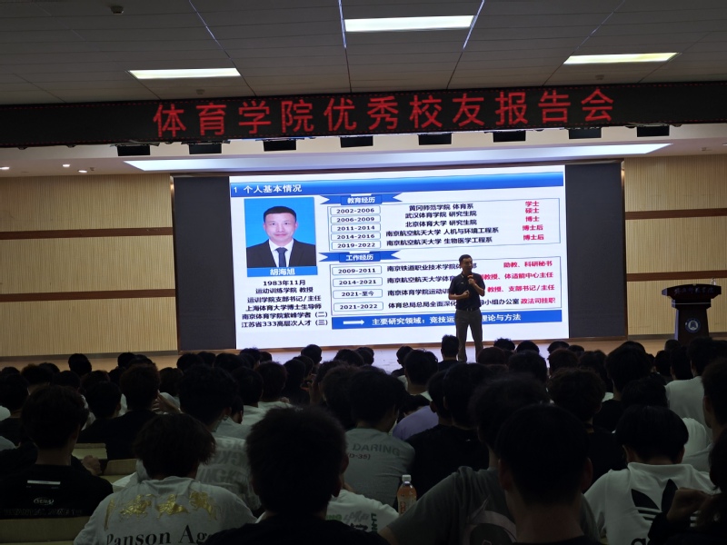 胡海旭教授2005年毕业于全讯新2网官网体育教育专业,后获武汉全讯新2网官网硕士学位、北京体育大学博士学位,现任南京全讯新2网官网运动训练学院教授、硕士生导师,主要研究方向为运动训练理论与方法。作为黄师体育学科培养的杰出代表,他的成长轨迹本身就是对“自强不息”精神的生动诠释。